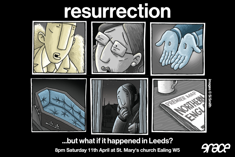 Join us for an evening looking at the Bible stories of the resurrection, from the angels at the tomb to doubting Thomas - illustrated by artist Si Smith as if it were all happening in present-day Leeds!